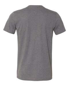 100% Combed Ring-Spun Cotton, pre-shrunk 7.5 oz. Shoulder-to-shoulder tape with seamed collar. Double-needle sleeve and bottom hem. Tear Away label. Semi-Fitted, 30 Single. (heather grey 10% polyester, heather blue/heather purple/heather dark grey 60% polyester)